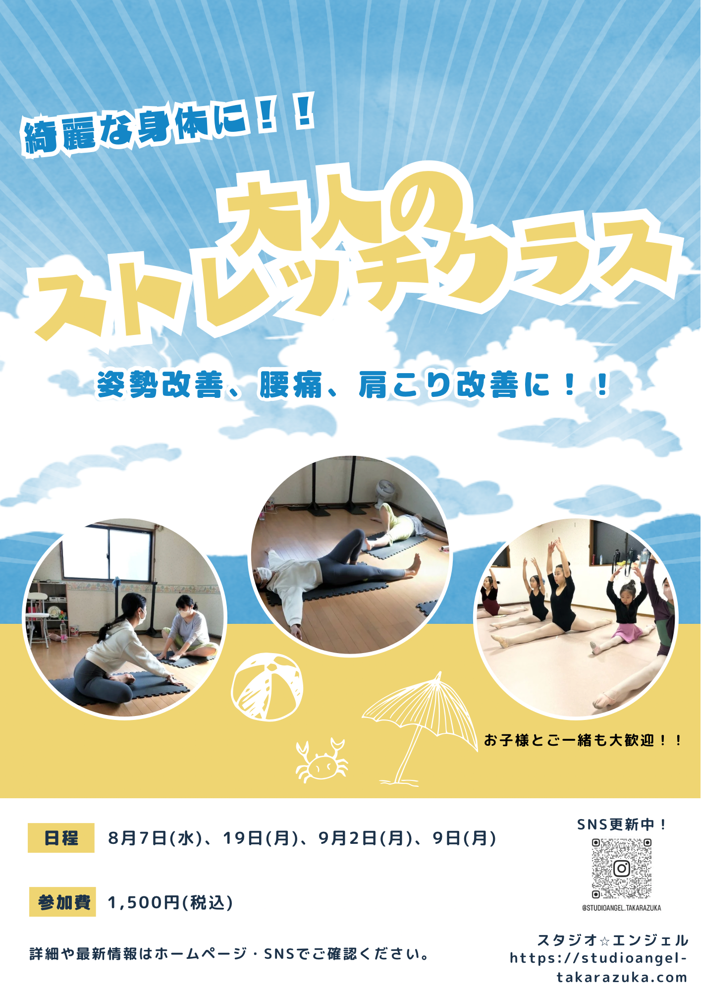 大人のストレッチクラスの8,9月分のスケジュールです✨